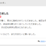 本当にびっくりするくらい、一度で楽になりました! 当日お電話して予約をしたのですが、急な予約も快く受けてくださり、ありがとうございます。 施術前は肩が凝ってい…